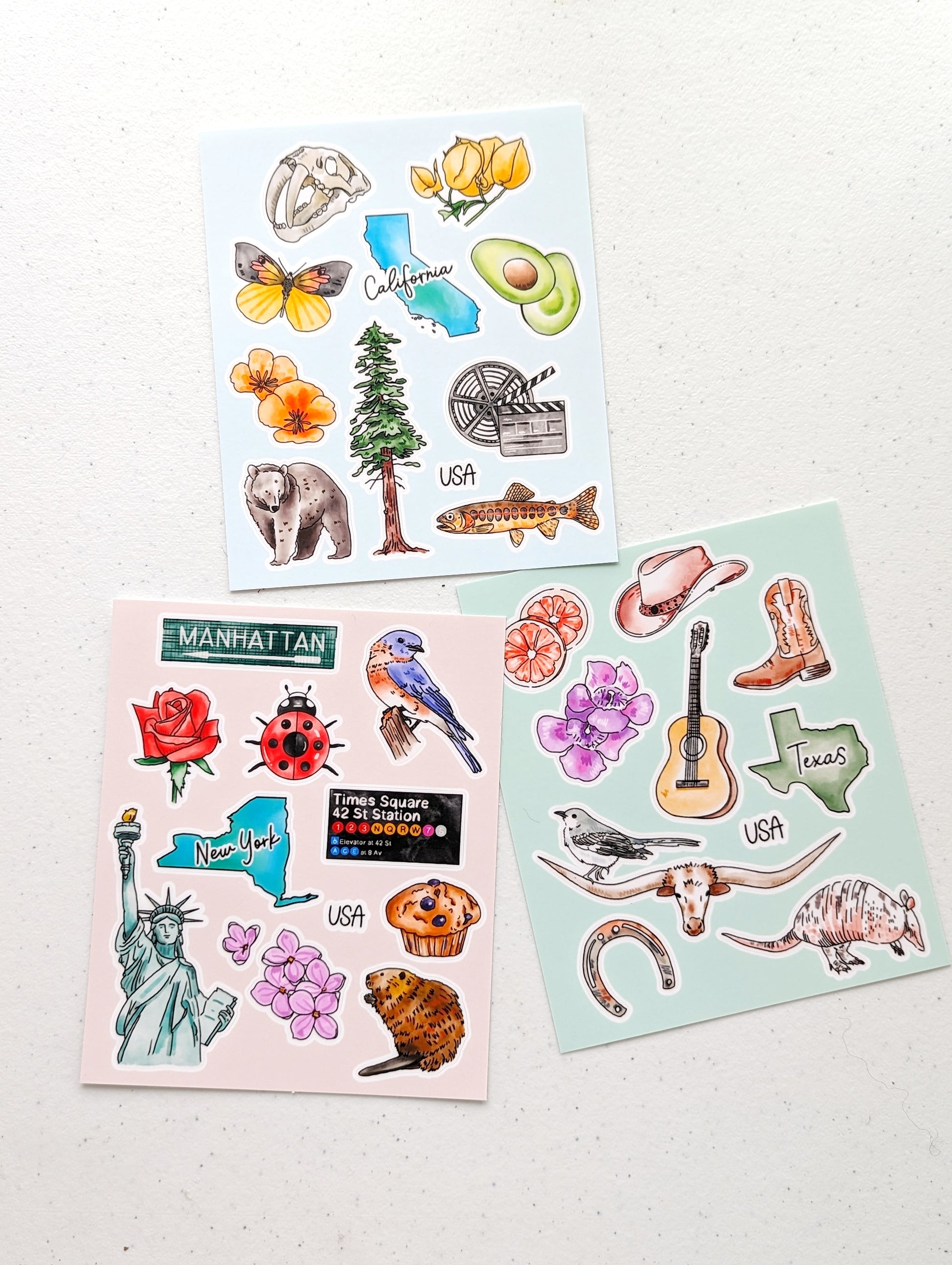 Capture the essence of California with this beautifully illustrated sticker sheet! Featuring iconic nature like the bear, redwood trees, golden trout, wildflowers, these stickers celebrate the best of the Golden State. Perfect for decorating laptops, scrapbooks, water bottles, and more.