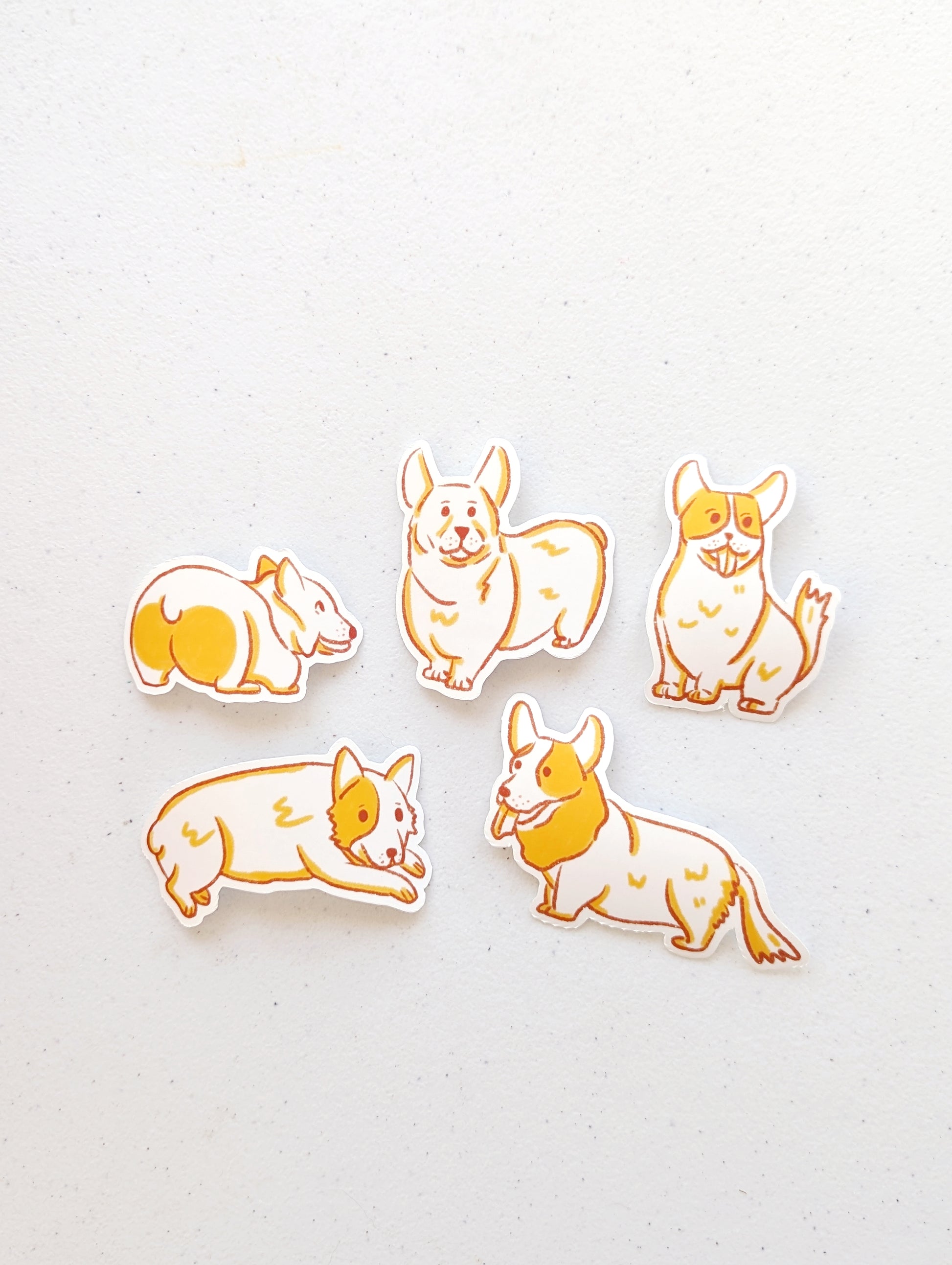 Bring the playful charm of Corgis to your collection with this adorable hand-illustrated sticker pack! Featuring the signature short legs, fluffy butt, and joyful expressions, these stickers are perfect for decorating your laptop, water bottle, planner, or journal.