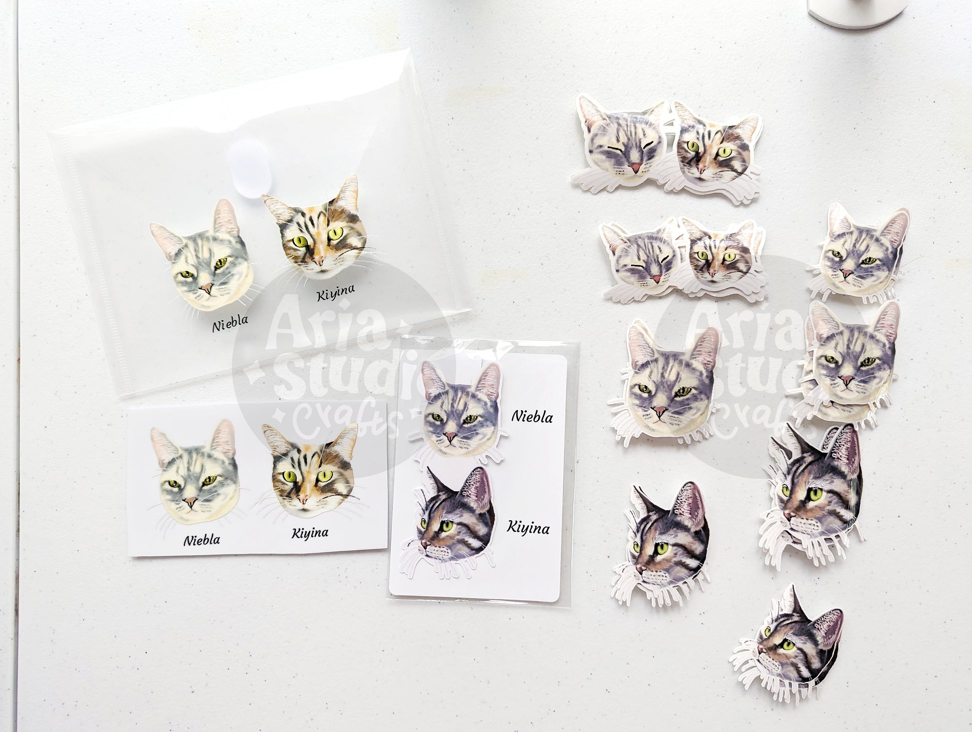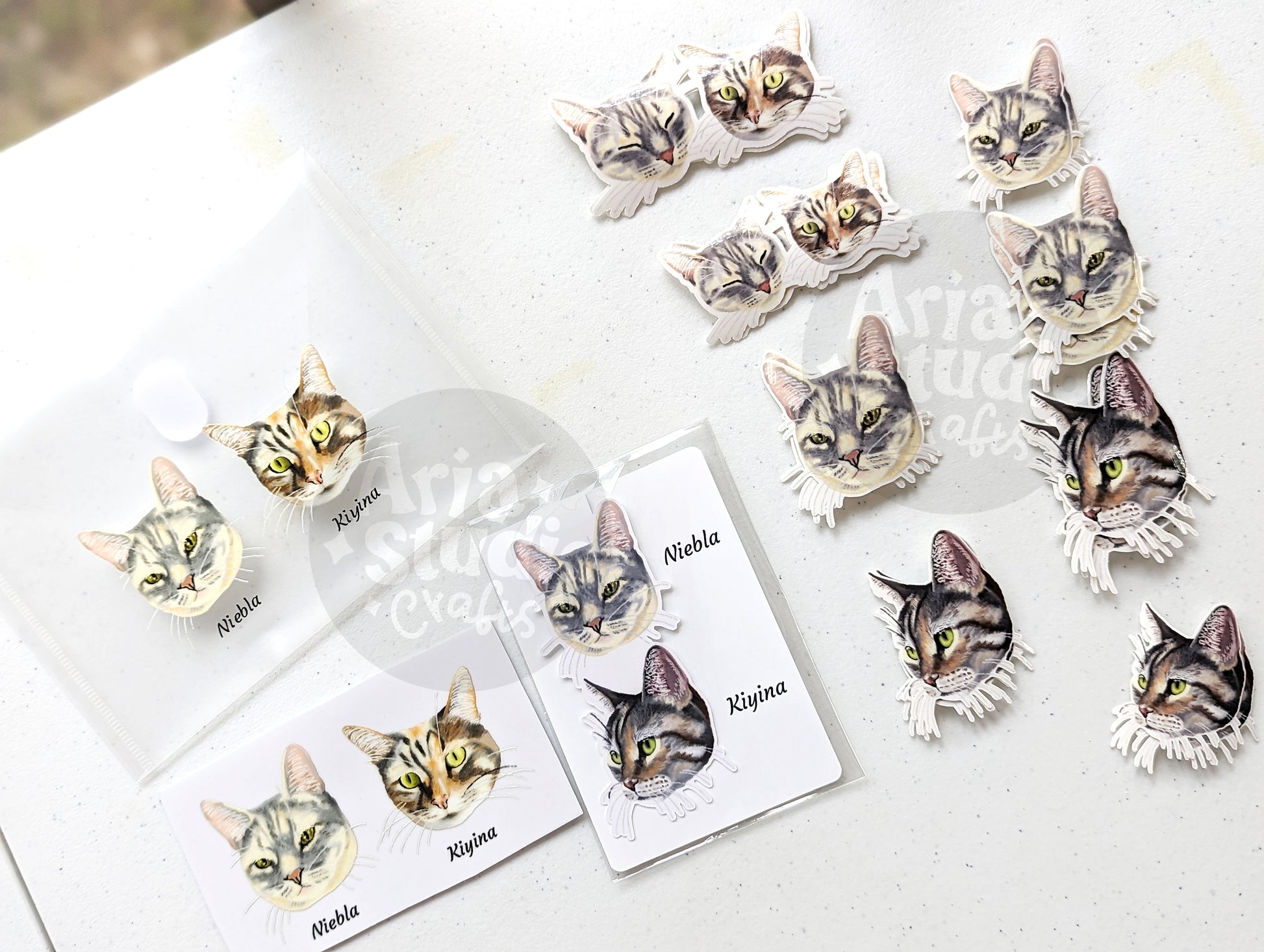 This set includes high-quality stickers, UV decals, and optional bookmarks—each featuring your pet's adorable face, carefully illustrated and printed with love. Just send us a photo of your pet, and we’ll transform it into a custom piece of art you can stick, share, and cherish.