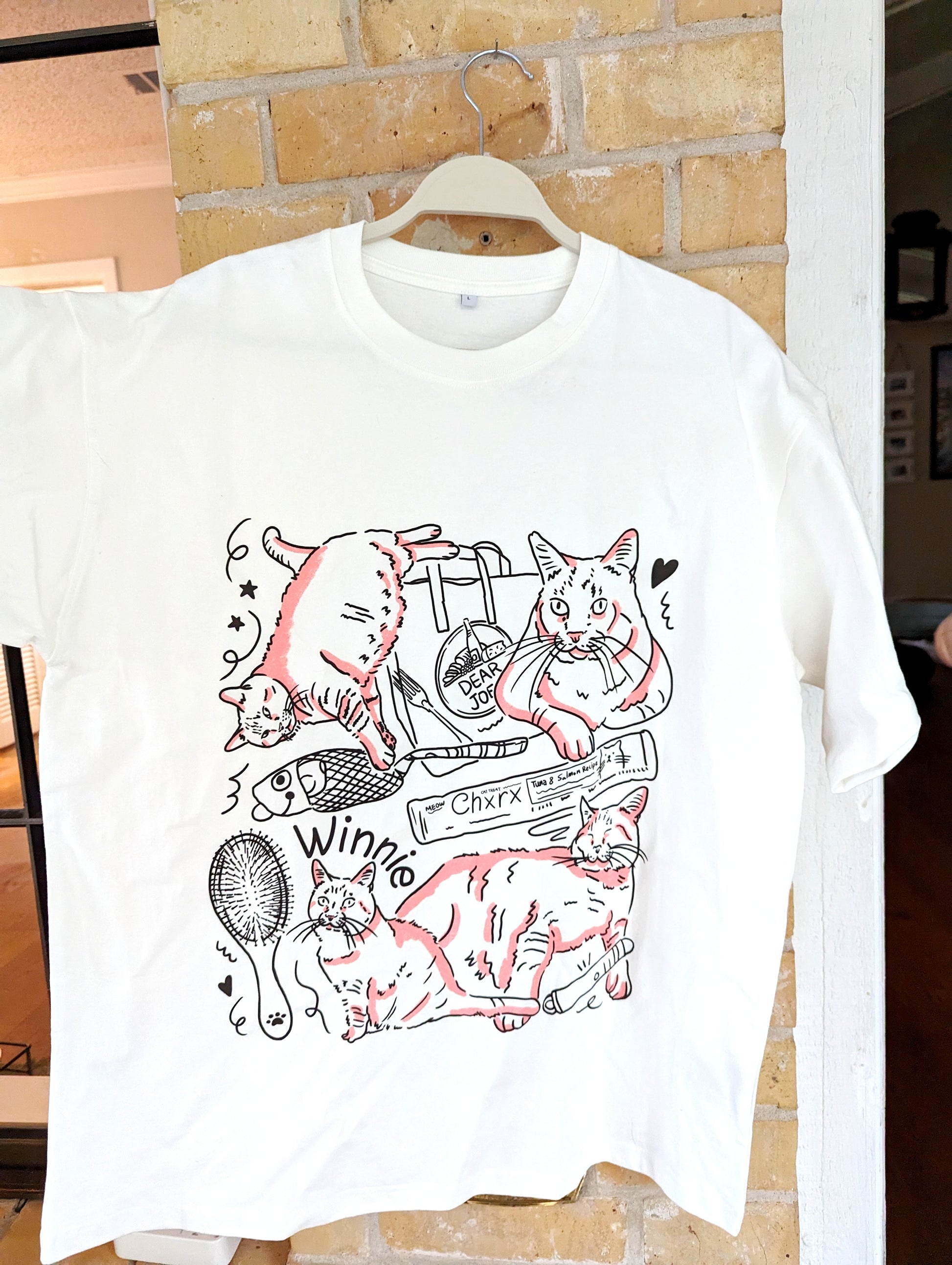 Celebrate your furry (or feathery!) family member with a one-of-a-kind, hand-drawn portrait T-shirt designed by me.