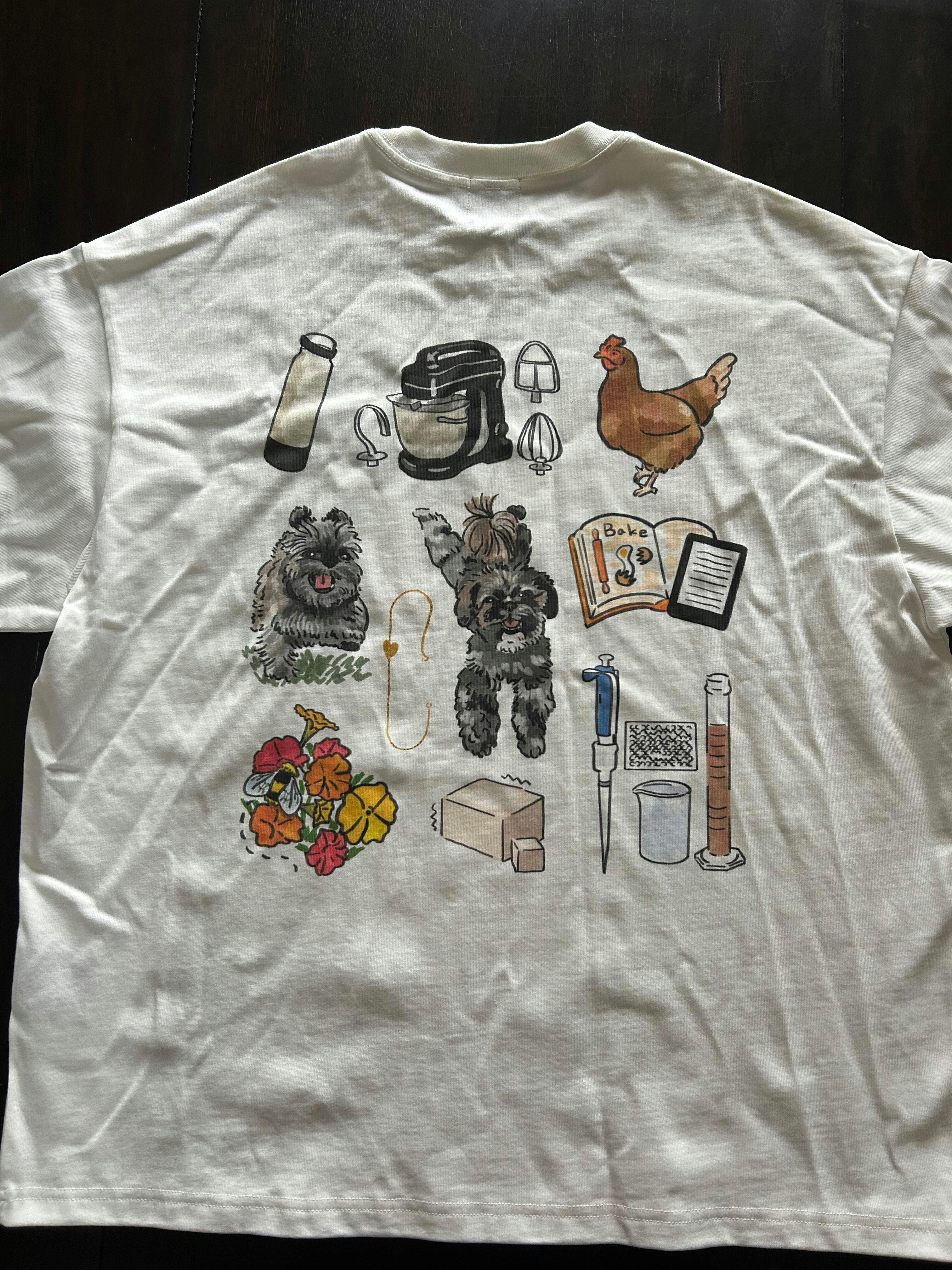 I love, love, love the shirt Aria designed for me! My boys are my world, being there for me through everything. I bought the custom two layer tee and find it to be comfortable and fashionable (and quality made!). In a world of AI “art” and corporations trying to hurt small businesses, it’s more important than ever to be ethical about consumption. I’ve told my friends about Aria’s work after receiving numerous compliments on my shirt. Great for gifting to a loved one of yourself! She’s so easy to work with, and she’s incredibly talented with a very cute and whimsical style of art. 15/10, would recommend!!