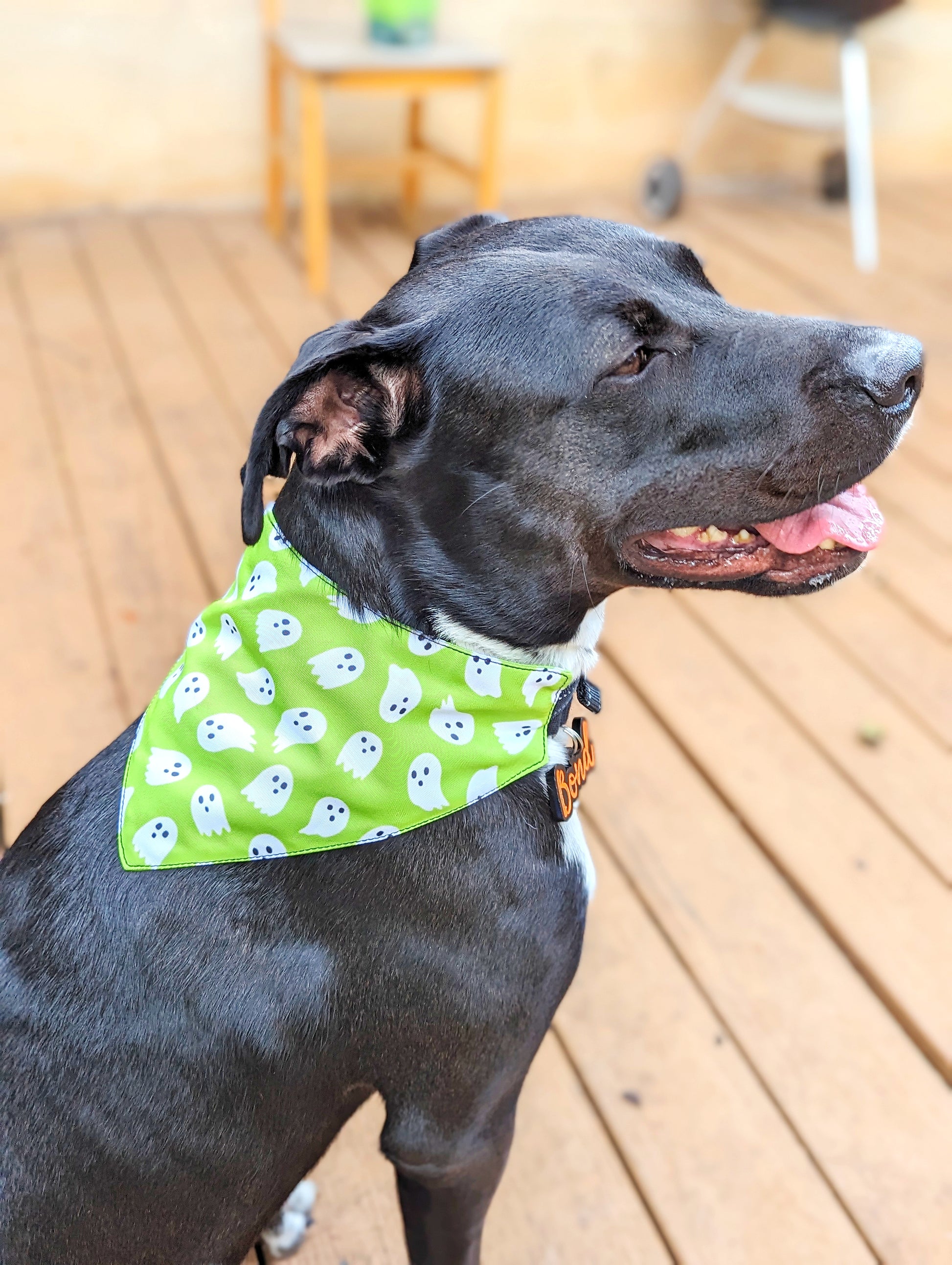 Halloween Dog Bandana – Double-Sided, Waterproof, Adjustable Buckle | Ghost Pattern