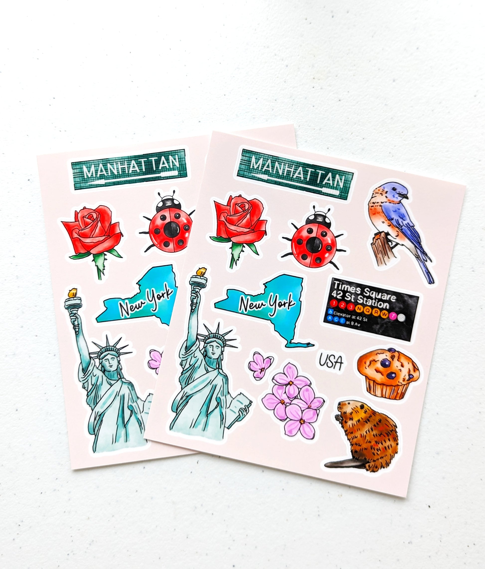 Celebrate the beauty of New York with this unique sticker sheet featuring iconic NYC landmarks and breathtaking natural scenery. From the Statue of Liberty and subway to flowers and symbolic animals, these high-quality vinyl stickers are perfect for decorating laptops, water bottles, journals, and more. Whether you're a New Yorker or simply love the Empire State, these stickers bring a piece of NY wherever you go.